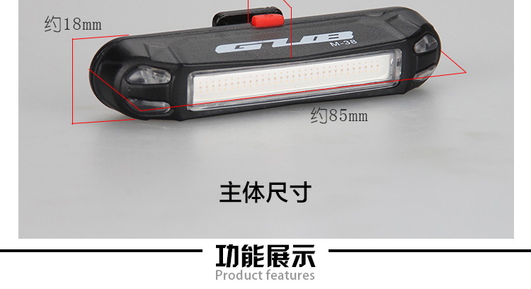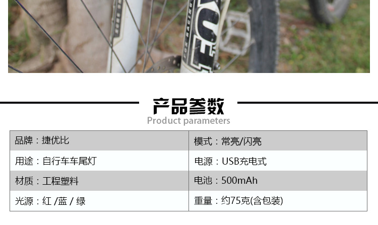 特性:LED技術(shù),COB整面發(fā)光,高亮100流明設(shè)計(jì),實(shí)現(xiàn)整體流暢設(shè)計(jì);配備USB接口,可循環(huán)充電;2種模式7種效果可循環(huán)切換;電池自動保護(hù)功能,電壓低于2.8V不工作;硅膠捆扎固定方式,120度方位調(diào)整,方便拆卸安裝;方型背扣設(shè)計(jì),可橫向和縱向不同角度安裝;可安裝在坐管,下叉,車把手,前叉等。
