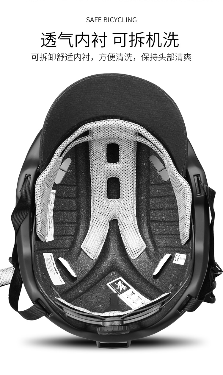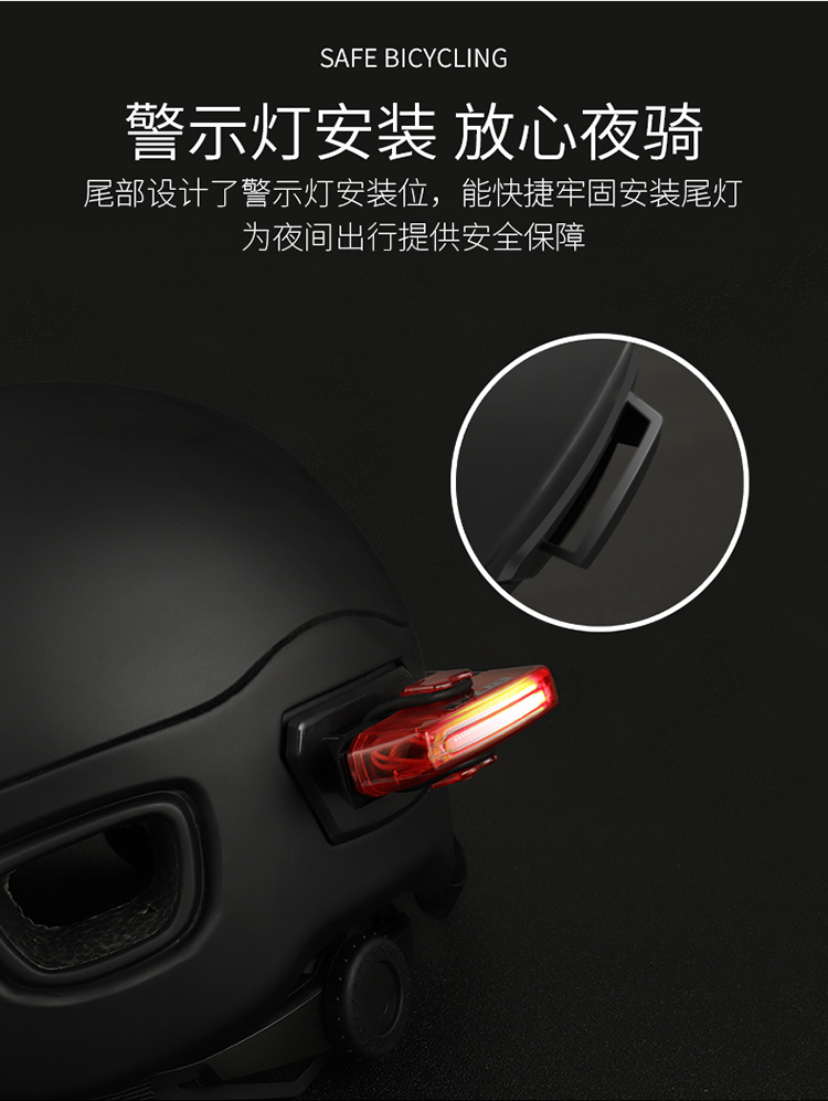 特色:簡潔大方的外觀設計,融入聰明的設計更適合城市休閑騎行,個性可拆卸軟性帽檐,尾部帶警示燈安裝位,尾部加強透氣孔可鎖在車上減少拎取。