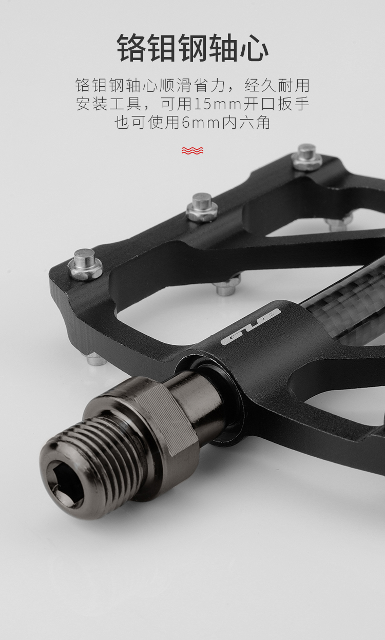材質:鋁合金腳踏主體+碳纖維軸套+鉻鉬鋼軸心