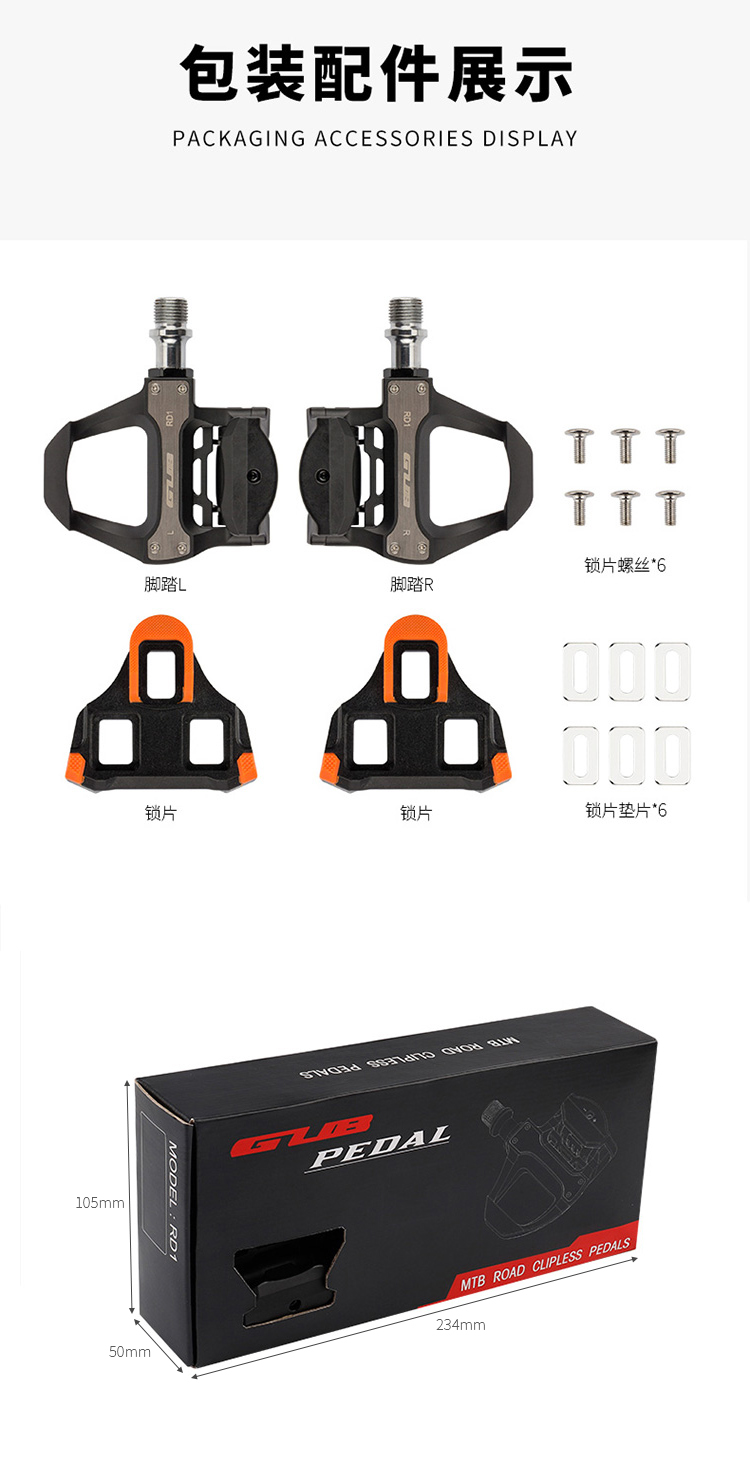 名稱:GUB RD1 公路車自鎖鎖踏 適用類型:公路車 材質:工程塑料+鉻鉬鋼軸心 重量:凈重約291克/對、毛重約462克 統(tǒng)一零售價:158元