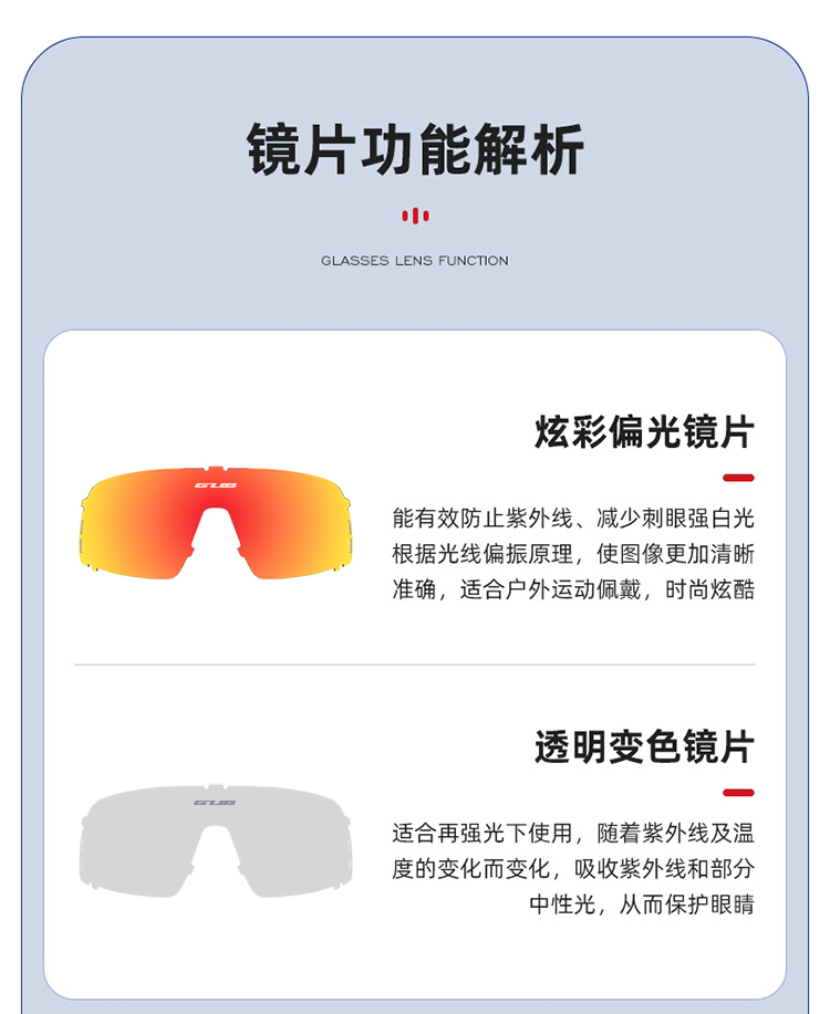 顏色:啞黑/透明變色+炫紅偏光、亮白/透明變色+白冰藍(lán)偏光