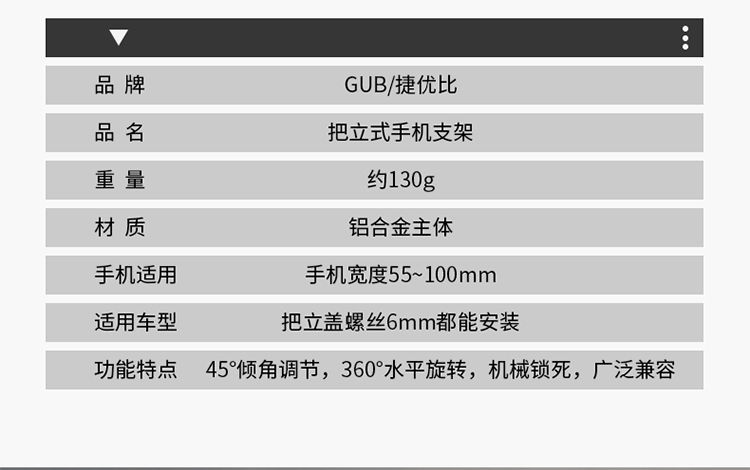 名稱:GUB G-90 鋁合金手機(jī)支架