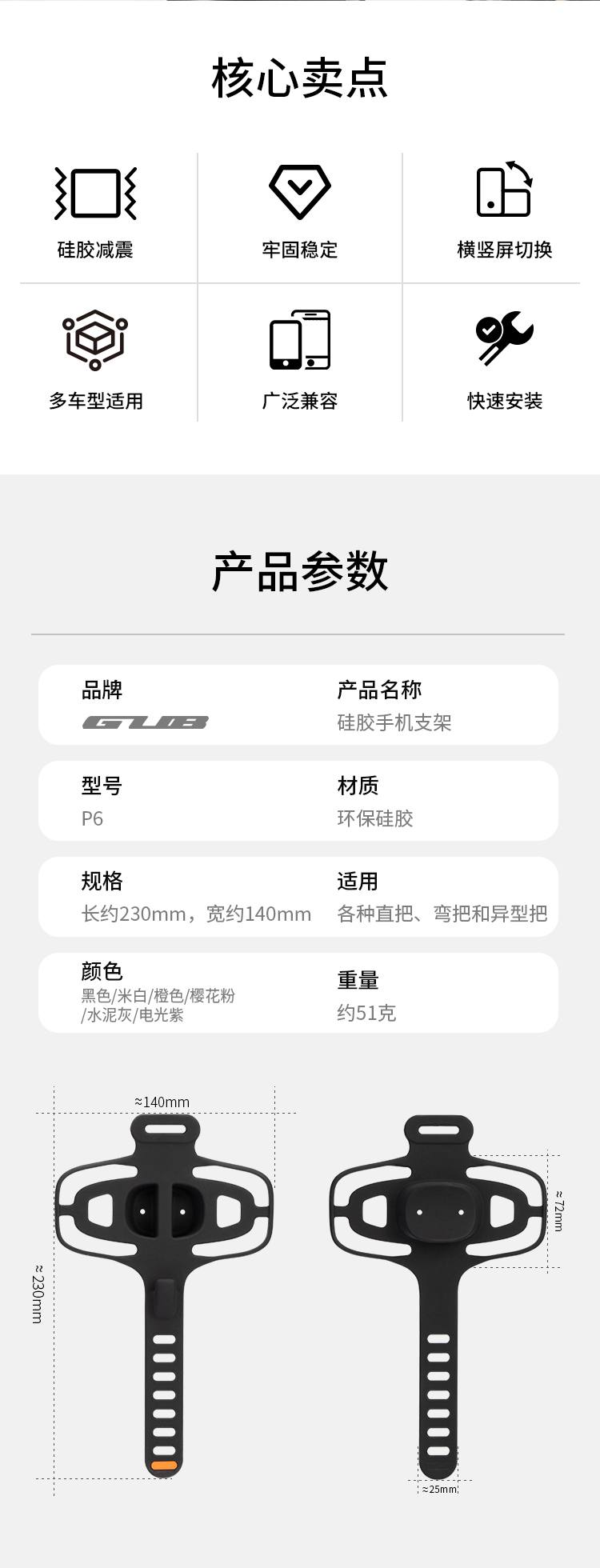 兼容:支持市面大部分手機(jī)尺寸,不挑機(jī)型